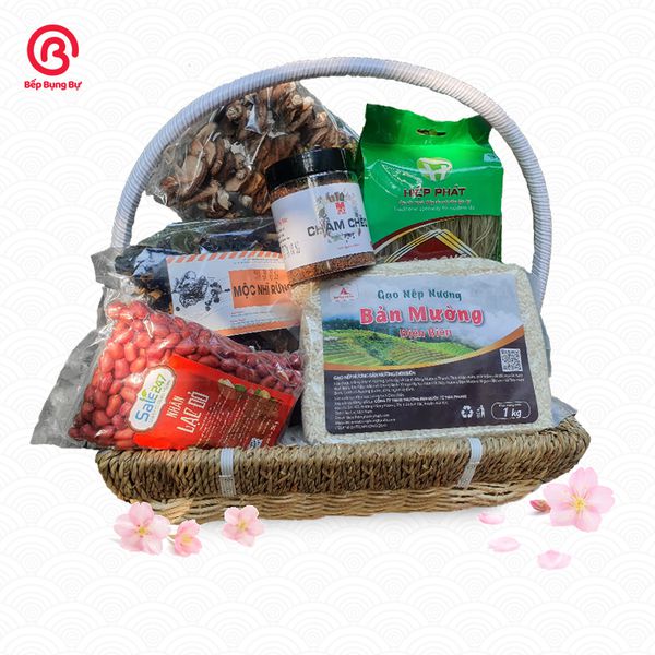 Set quà tết Gia vị "May Mắn" biểu trưng cho sự quan tâm, lòng thành kính, biết ơn đến những người mà bạn thương yêu, trân trọng. Với các món quà đặc sản các vùng miền và vô cùng thiết thực trong ngày tết như Gạo nếp nương Điện Biên, mộc nhĩ rừng, miến, nấm hương, chẩm chém hương vị Tây Bắc... Set quà tết Gia vị "May Mắn" chẳng cần cầu kỳ, hào nhoáng màu sắc mà ai nhìn cũng thích mê.
