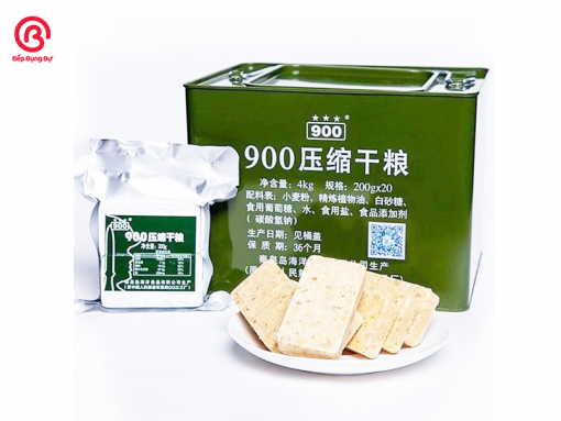 Lương khô quân đội 900 ba sao Trung Quốc: loại này là một loại sản phẩm dành cho các bạn ăn kiêng, không thích ăn ngọt. Lương khô 900 ba sao ăn giòn giòn, bùi bùi, thơm, ngọt nhẹ, có hàm lượng dinh dưỡng cao.